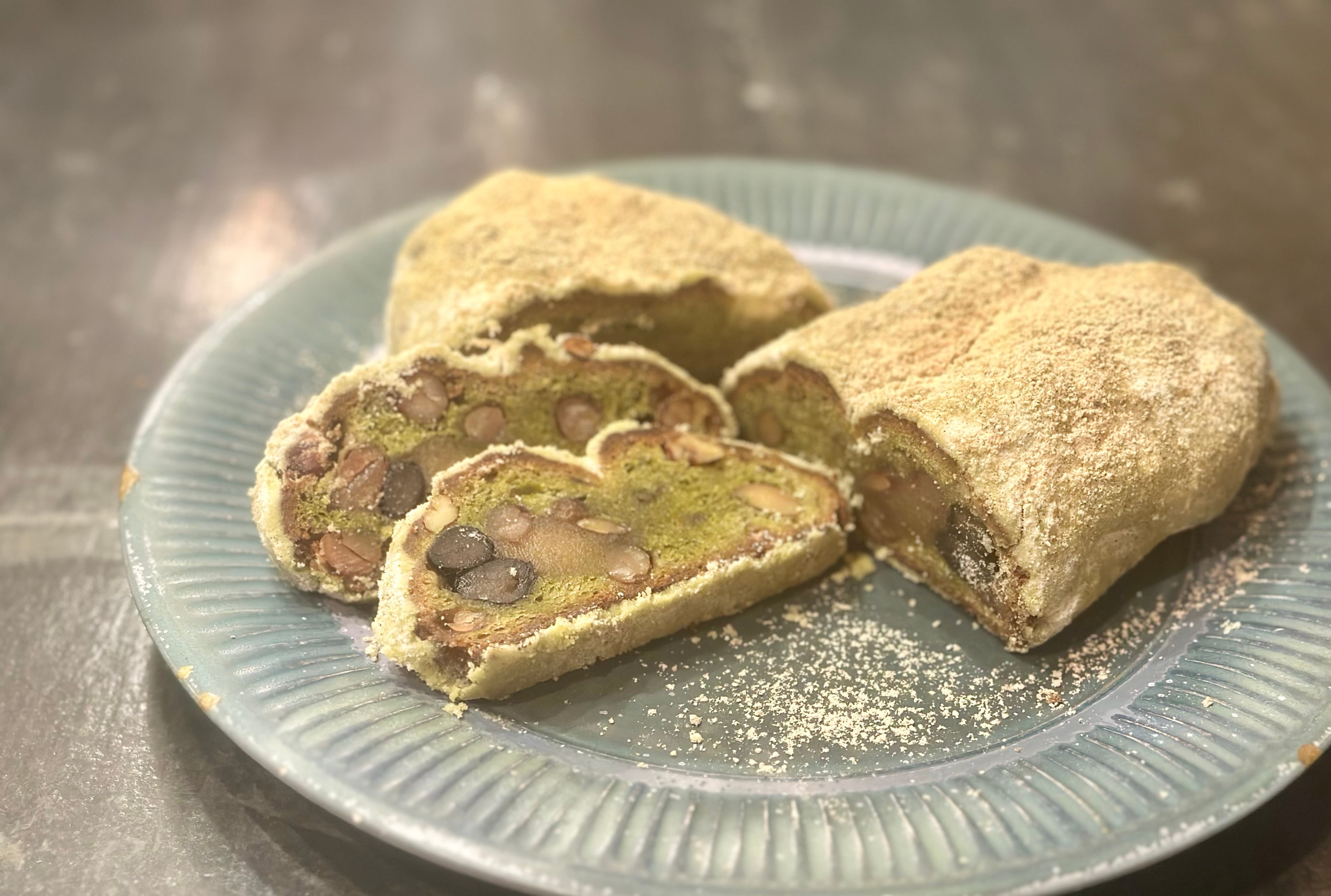 北海道の小麦粉に京都宇治の有機抹茶を配合した和風のシュトレン。
